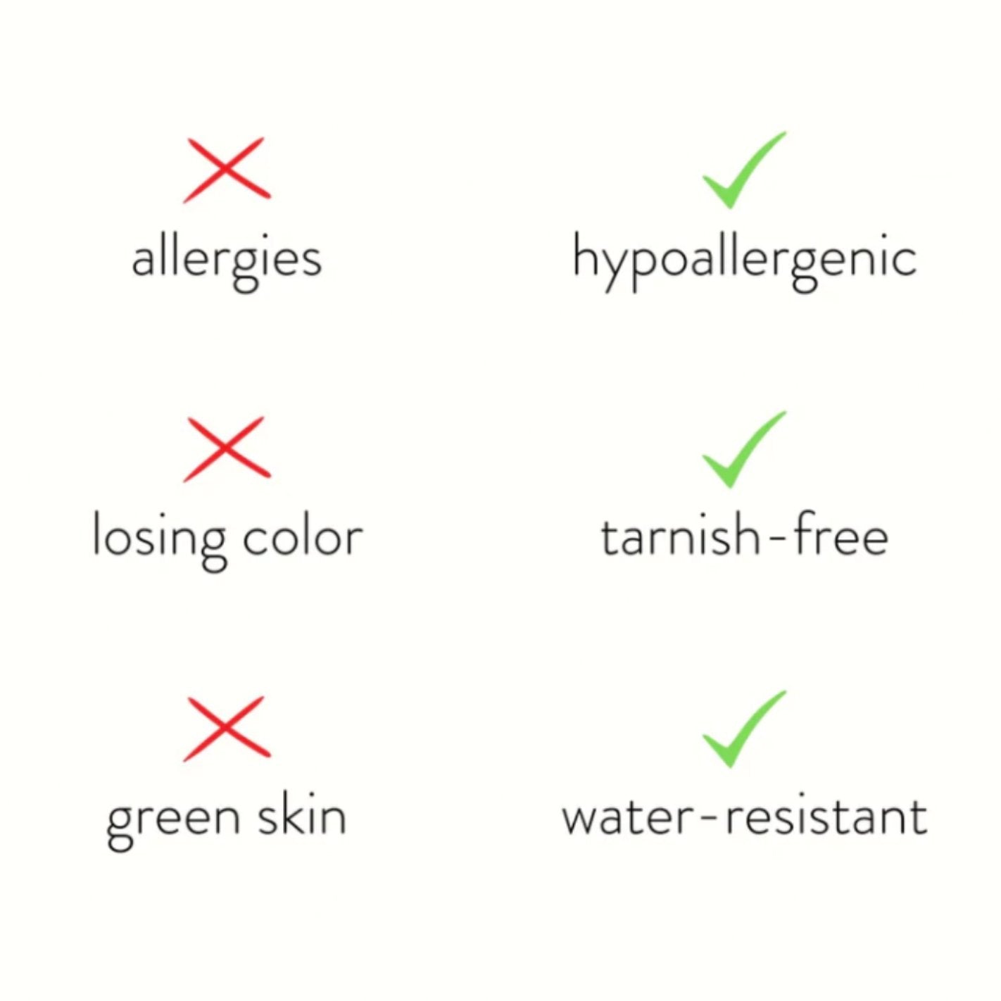 Hecho de acero inoxidable impermeable, nunca más tendrás que preocuparte por joyas que se descoloran o se empañan.